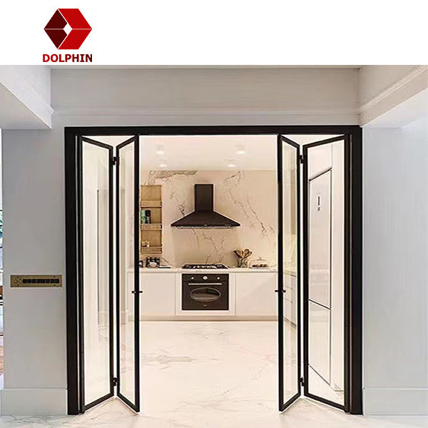 النمط الأوروبي الأسود ثنائي الطي باب من الألومنيوم باب زجاجي قابل للطي نظام باب قابل للطي